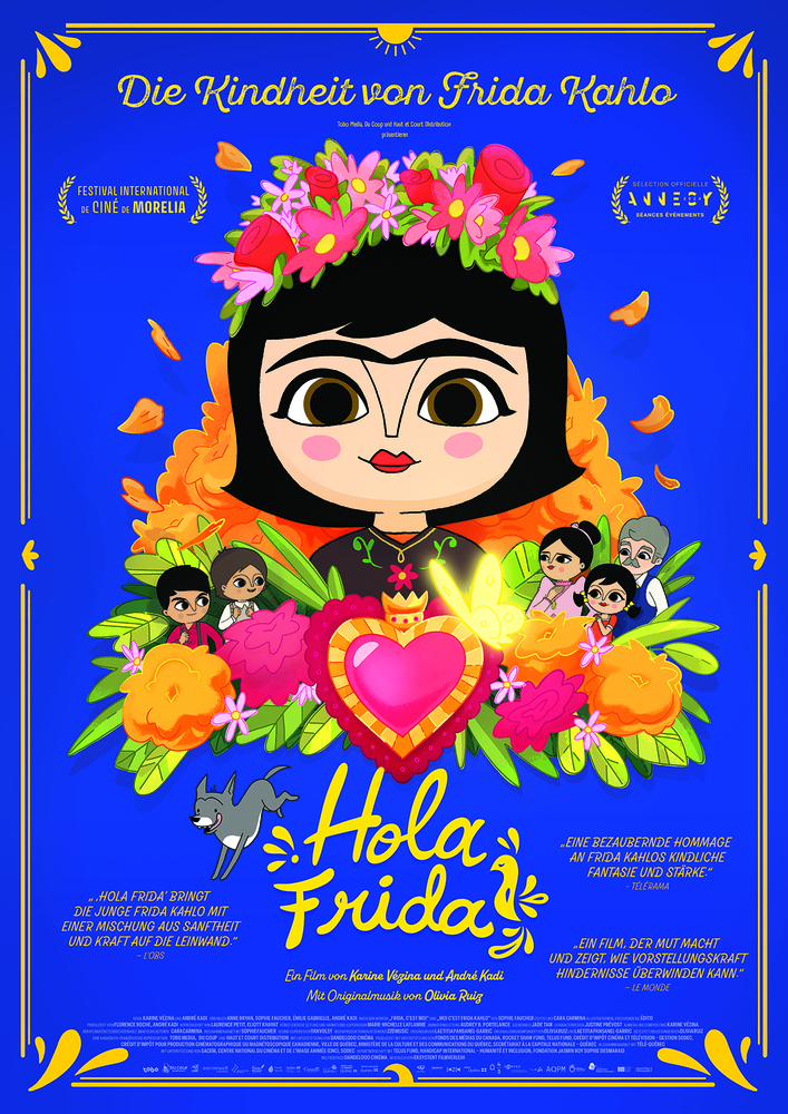 Als die erwachsene – und schon berühmte – Künstlerin Frida Kahlo ihr altes Tagebuch findet, erinnert sie sich an ihre Kindheit zurück: an die Einkäufe auf dem Markt, ihren Traum, Ärztin zu werden, aber auch die Hänseleien auf dem Schulhof und die langen Monate im Krankenzimmer. An Kinderlähmung erkrankt, verbringt Frida viel Zeit allein und erschafft sich eine imaginäre Freundin, die ihr Kraft gibt, gegen den Tod anzukämpfen – was in poetischen Bildern auf der Leinwand erzählt wird. Mit Hilfe ihres Vaters, einem Fotografen, findet Frida in dieser Zeit auch den Weg in die Malerei, zunächst um sich zu beschäftigen, aber auch um die vielen Bilder in ihrem Kopf und von sich selbst festzuhalten. Sie hilft ihm, Schwarzweiß-Fotografien zu kolorieren, und entdeckt dabei, dass die Welt in Bunt sehr viel schöner ist. Später erweitert sie die abfotografierte Realität um Blumen und farbenfrohe Dekorationen – so wie sie auch ihr Spiegelbild in immer neuen Variationen malt und ihre einzigartige Kunstform entwickelt.